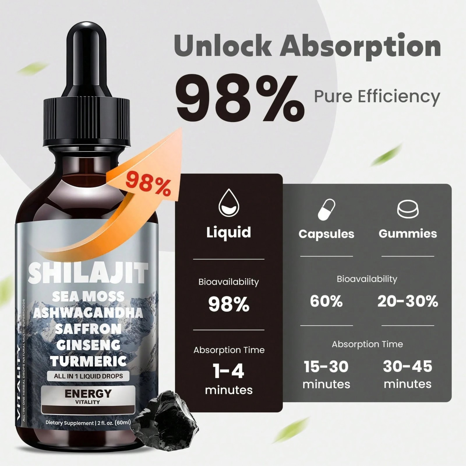 Shilajit Sea Moss Ashwagandha Liquid Drops,...